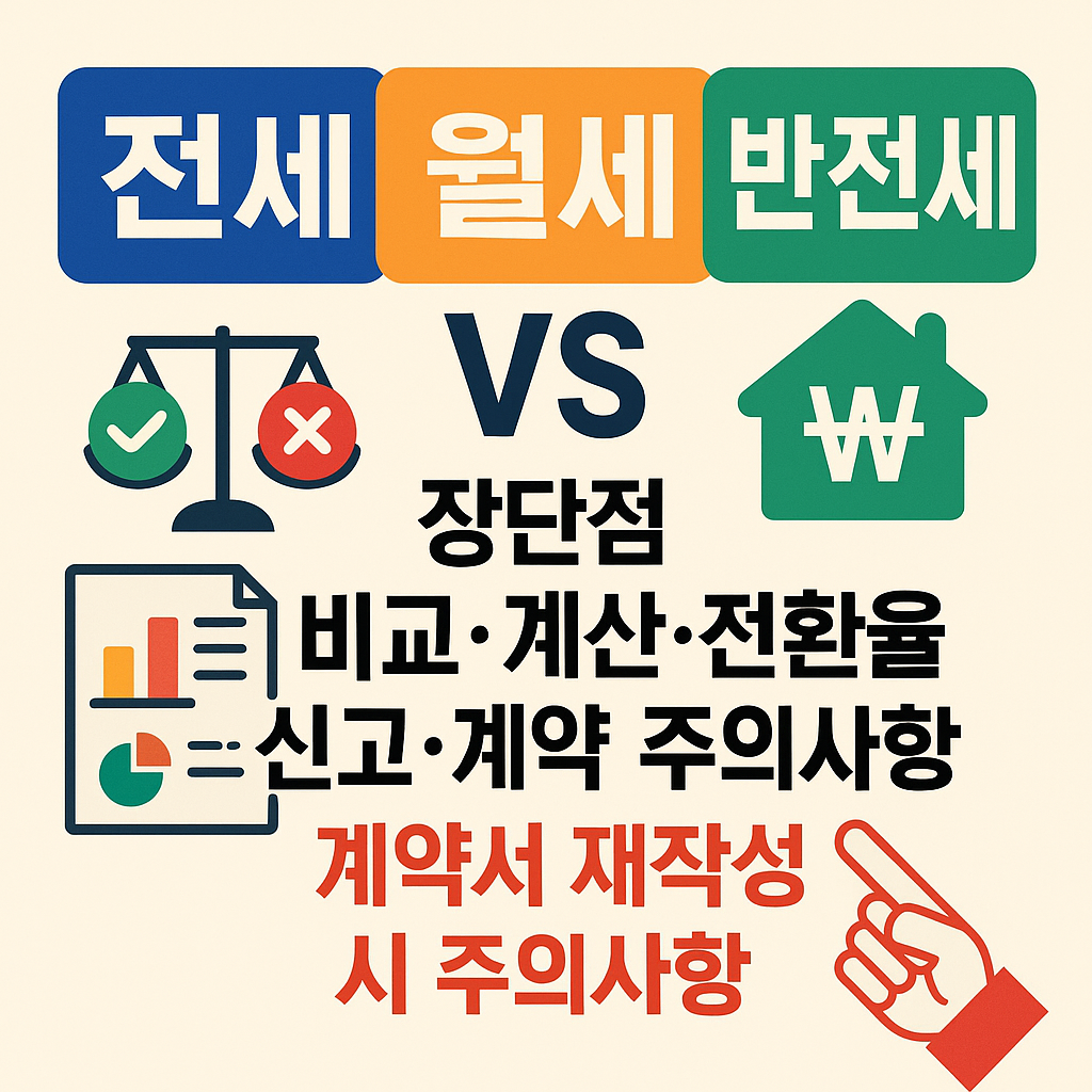 전세 vs 월세 vs 반전세 장단점·계산·전환율·신고·계약 주의점까지… 지금 모르면 내 통장은 털립니다