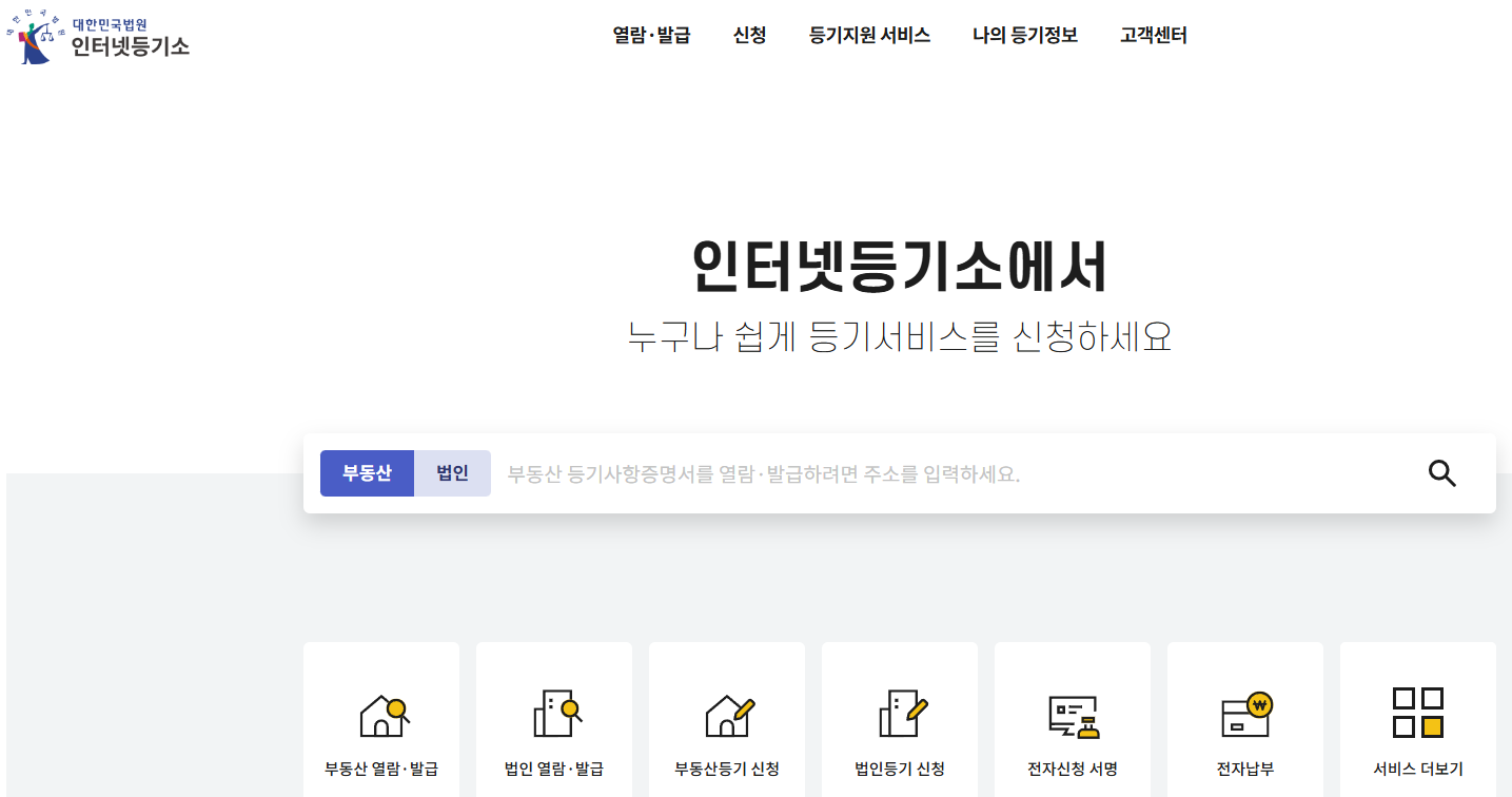 조회는 대법원 인터넷등기소에서 아래 순서대로 가능합니다.