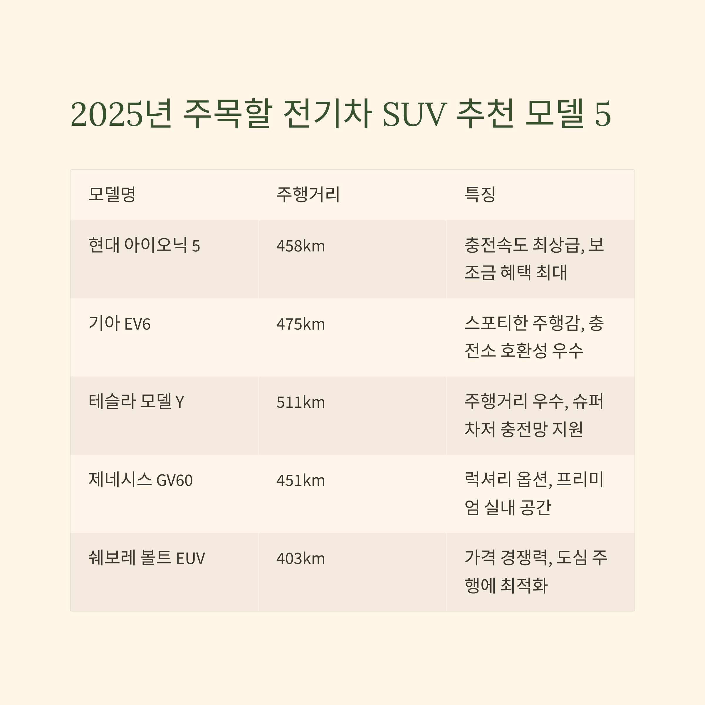 이 글 하나로, 전기차 SUV 추천 모델을 주행거리·가격·보조금 기준으로 깔끔하게 비교해드립니다!